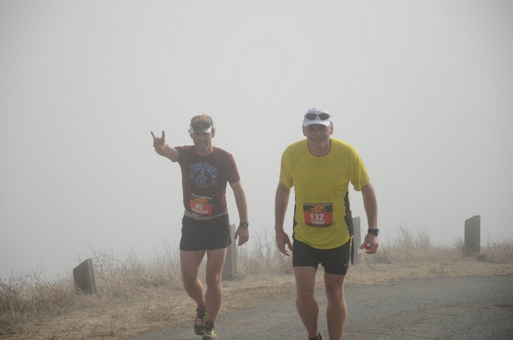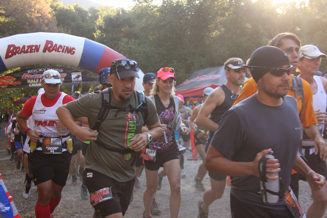 I arrived at the race at 7am. There is not a lot of parking available at Las Trampas so if you have kids like me you will want to get there early. If its all the same to you then park near the corner of Bollinger Canyon & Crow Canyon and take the shuttle. Bib pick up was quick & easy but the porto potty lines were long. For a race of this magnitude I would suggest a few more. My wife, toddler son and our tiny Maltese Billy all came along this morning to cheer me on. They got themselves set up with chairs and toys and such as I made my way over to the starting corral. After a roaring rendition of Happy Birthday for Frank the Tank on his 80th birthday we got a few race announcements of the usual sort from Sam and the countdown commenced.